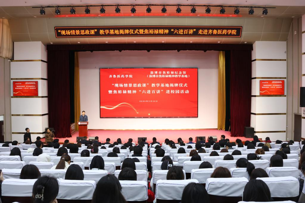 活動中,齊魯醫藥學院與淄博市焦裕祿紀念館簽署“現場情景思政課”教學基地共建協議,“現場情景思政課”教學基地正式揭牌。與會人員共同觀看了長篇敘事詩朗誦作品《焦裕祿之歌》、情景黨課《焦裕祿就在我們身邊》、音樂黨課《奮進的音符》。