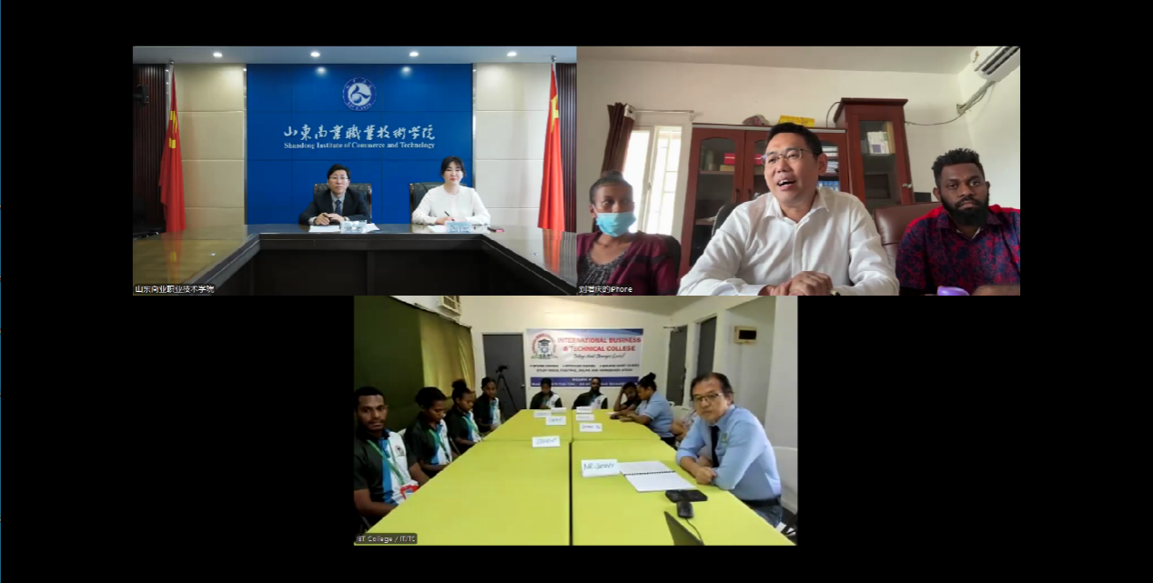 4月16日,山東商業(yè)職業(yè)技術(shù)學(xué)院和巴布亞新幾內(nèi)亞國際商業(yè)及技術(shù)學(xué)院、巴新電力建設(shè)有限公司《共建“山東商業(yè)職業(yè)技術(shù)學(xué)院巴布亞新幾內(nèi)亞莫爾斯比港分校”合作備忘錄》簽約儀式通過視頻連線方式在山東濟(jì)南、巴新莫爾斯比港同步舉行。