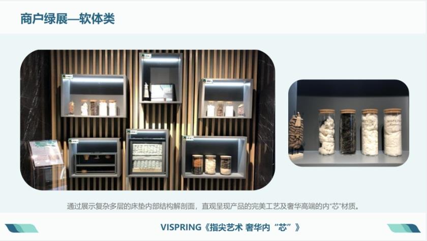 截至目前累計打造綠展點位268處,其中優秀展陳31個品牌,通過綠色展陳助力商戶成交落單轉化680萬元。