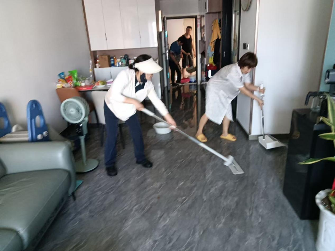 待業(yè)主趕回,打開家門看到的是一片狼藉的淹水場景,物業(yè)團隊在征得業(yè)主同意后迅速進入,確定漏水原因為廚房角閥因長期使用老化爆裂。與此同時,其他工作人員利用拖把、水桶等工具全力清理室內(nèi)積水,盡力縮短家具、地板的浸泡時間。經(jīng)過一個多小時的努力,屋內(nèi)積水被徹底清除,工作人員還貼心給予了后續(xù)處理建議。物業(yè)團隊的迅速響應、高效處置和盡責態(tài)度,讓業(yè)主深受感動,特地制作錦旗以表感激。