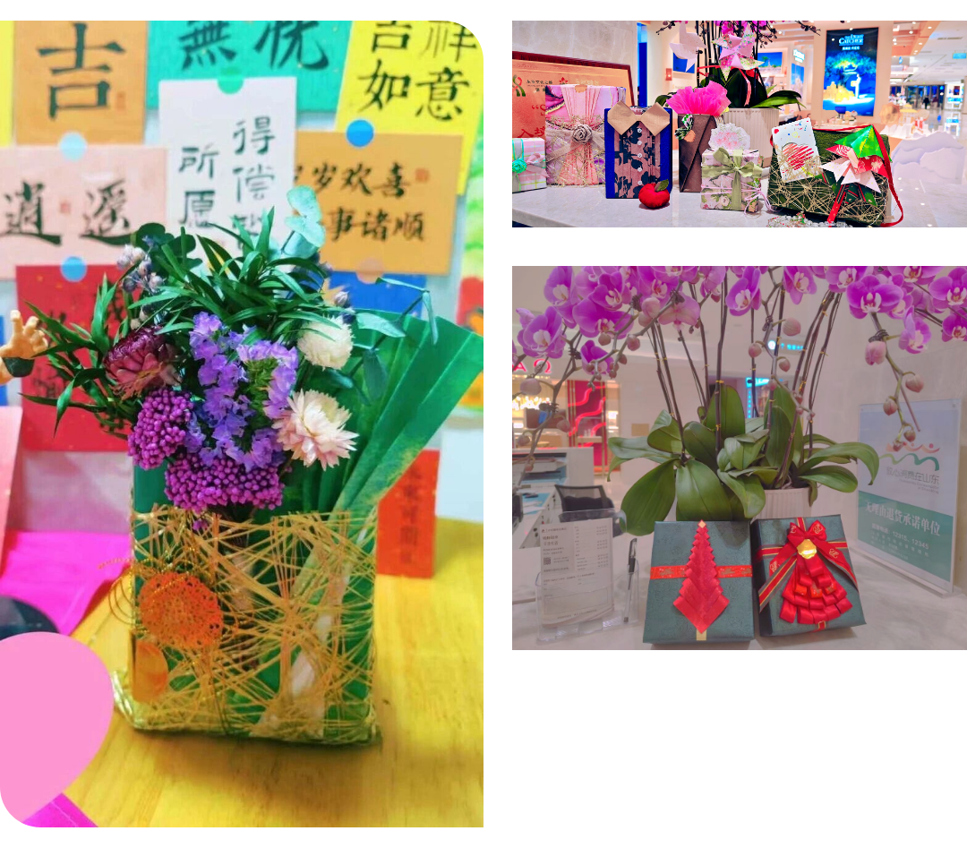 為了進一步提升服務技能,客戶服務團隊全員系統組織從基礎包裝到絲帶藝術、色彩搭配的訓練,按生日、節日、婚慶等節點推出主題包裝,滿足顧客多樣化禮品包裝需求。總臺陳列優秀作品,開設線上預約包裝渠道,最大限度提升了顧客滿意度及銷售轉化率。