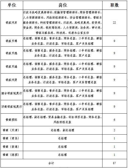公司總部各部室崗位22人,直屬單位經營管理層崗位65人。
