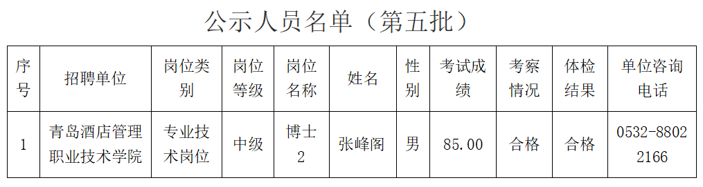 根據(jù)省委組織部、省人力資源和社會保障廳《關(guān)于印發(fā)2023年度省屬事業(yè)單位公開招聘工作實施方案的通知》(魯人社發(fā)〔2022〕23號)和省屬事業(yè)單位公開招聘有關(guān)政策規(guī)定,按照崗位招聘計劃,青島酒店管理職業(yè)技術(shù)學院組織完成了公開招聘考試、考察、體檢等工作,現(xiàn)對該單位第五批擬聘用人員進行公示。公示期為7個工作日,自2023年8月29日至2023年9月6日(不含節(jié)假日)。公示期間,如對公示人選有異議,請向山東省商業(yè)集團有限公司人力資源部反映。反映問題要實事求是,并告知真實姓名及聯(lián)系方式。